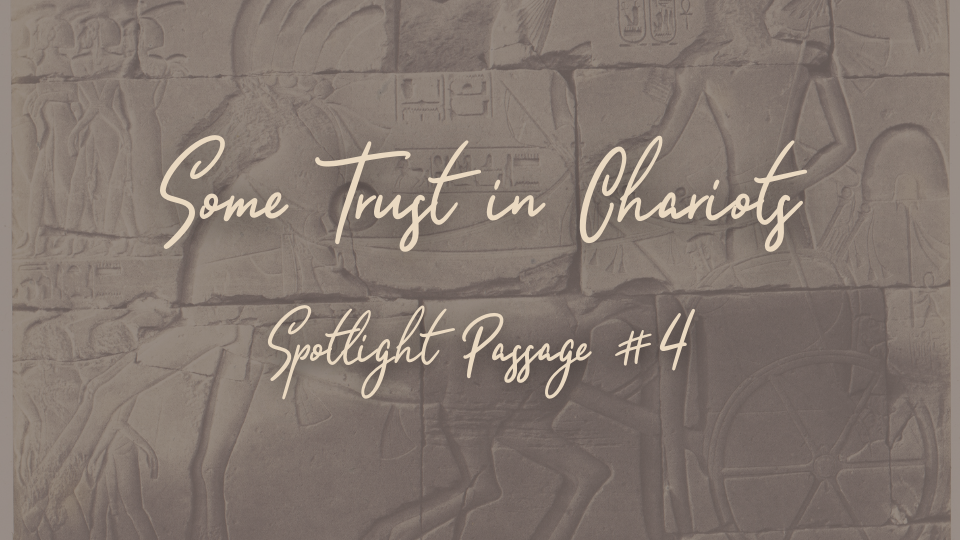 But the psalmist says: we don't trust in that. We trust in the name of the LORD. In His name—His character, His reputation, who He has revealed Himself to be.